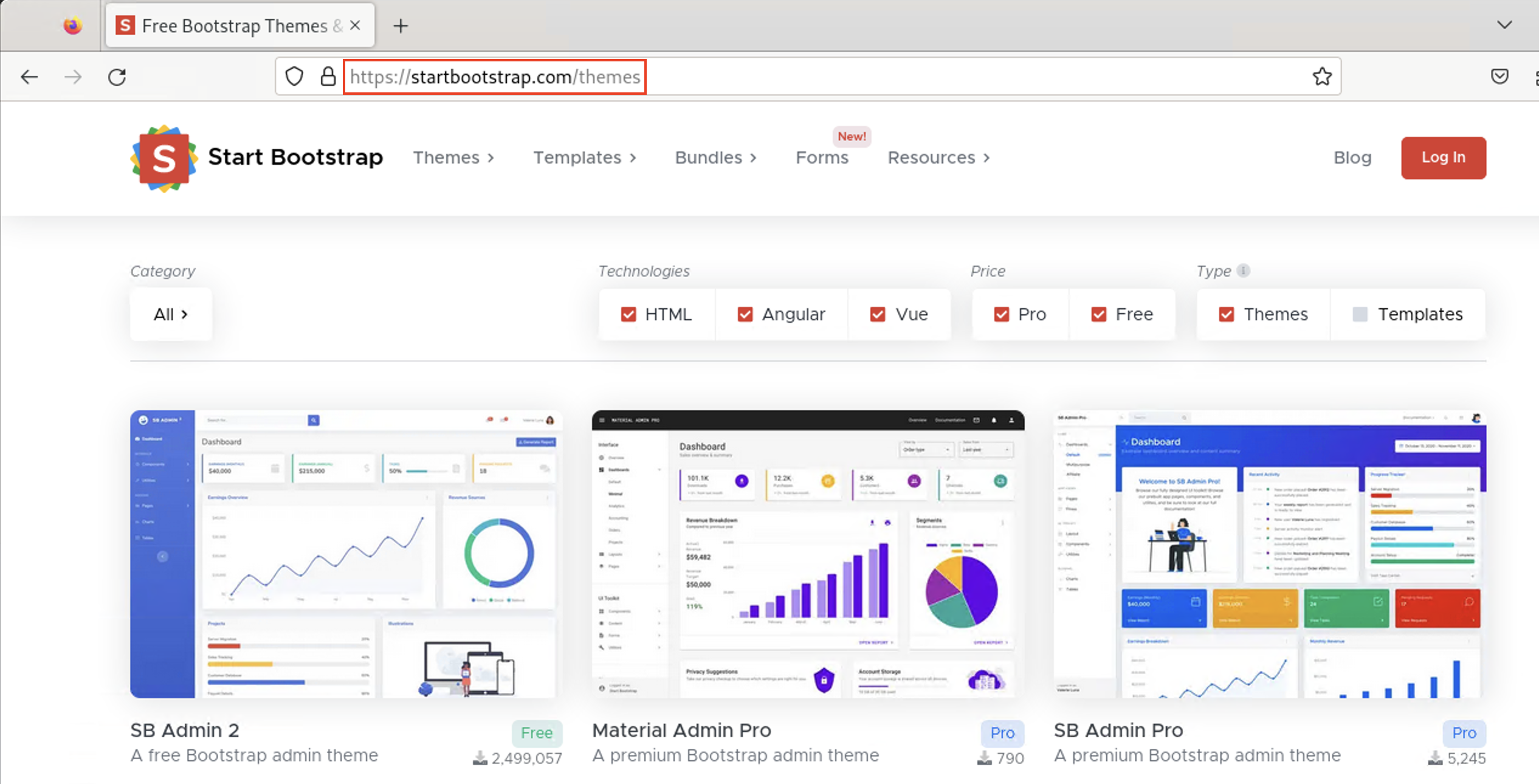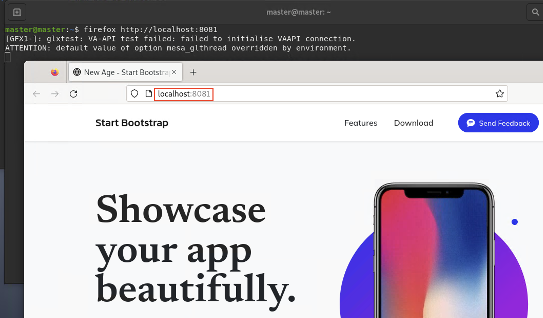 "firefox http://startbootstrap.com/"를 입력하여 해당 Bootstrap 웹 사이트에 진입해본다.