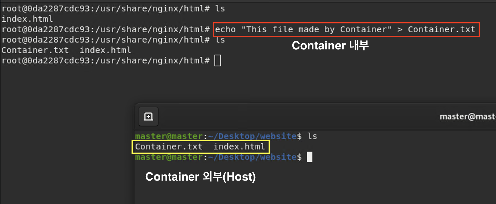 호스트머신에서 생성 후 호스트머신에 저장되었던 HTML 문서가