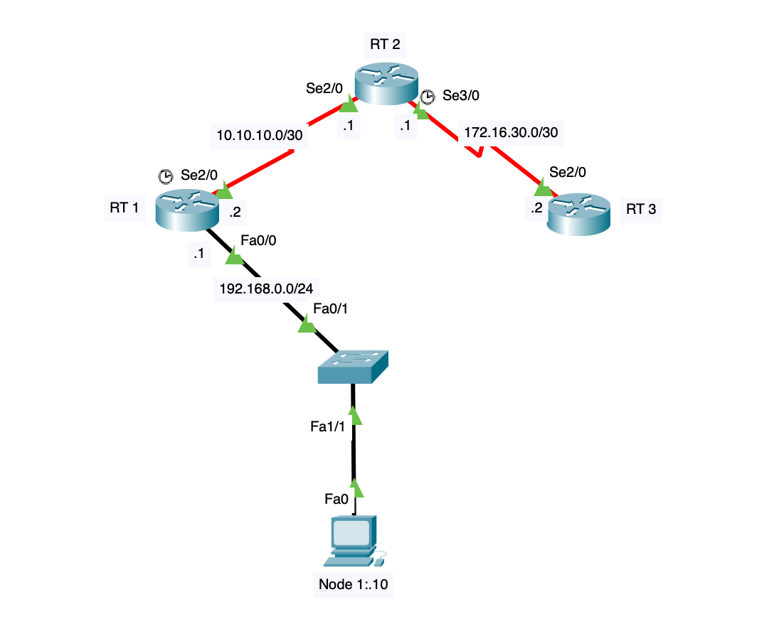 RT1 (config) #ip route 172.16.30.0 255.255.255.252 s2/0